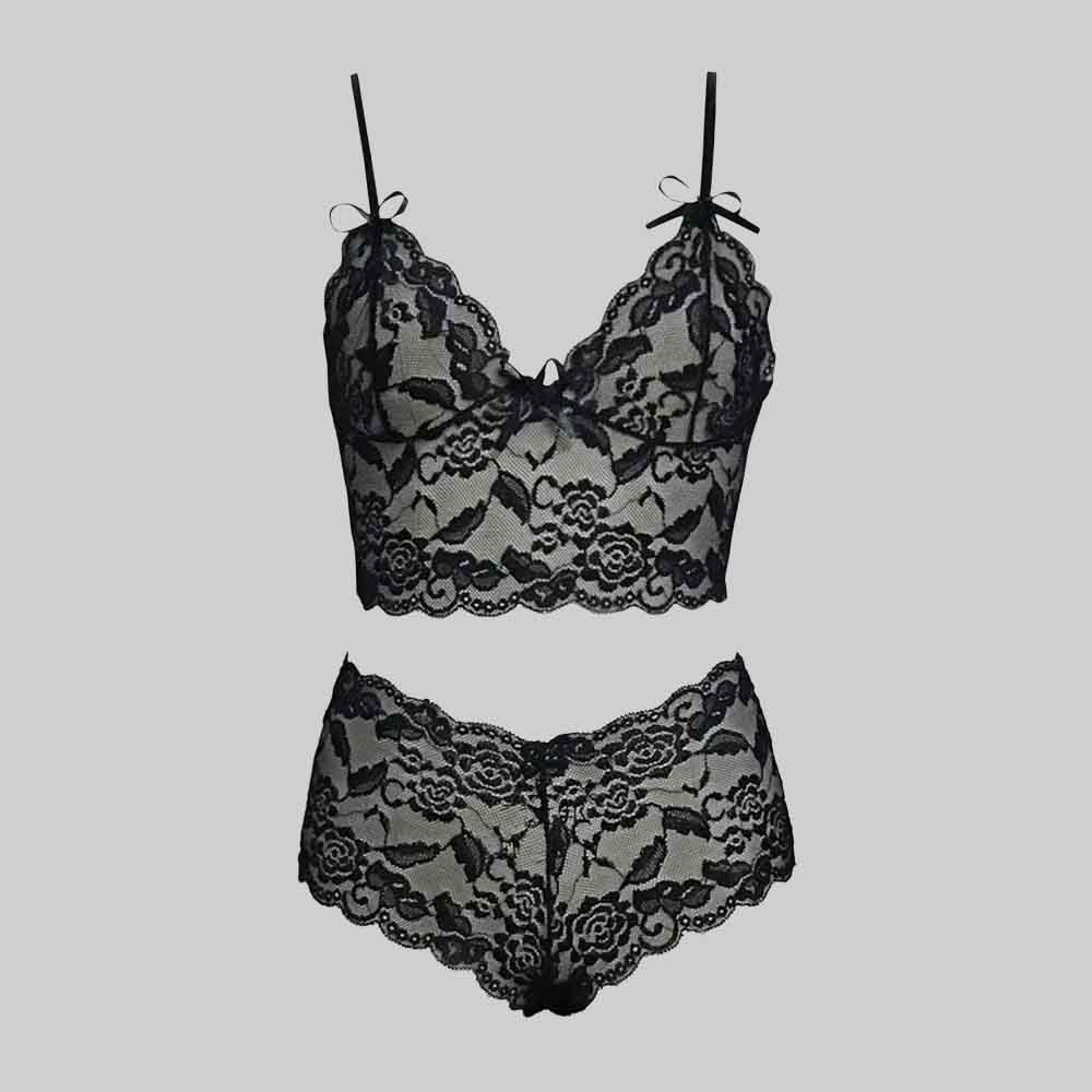 Ensemble Fleurie Noir – Élégance Dentelée : Un Voyage Sensuel